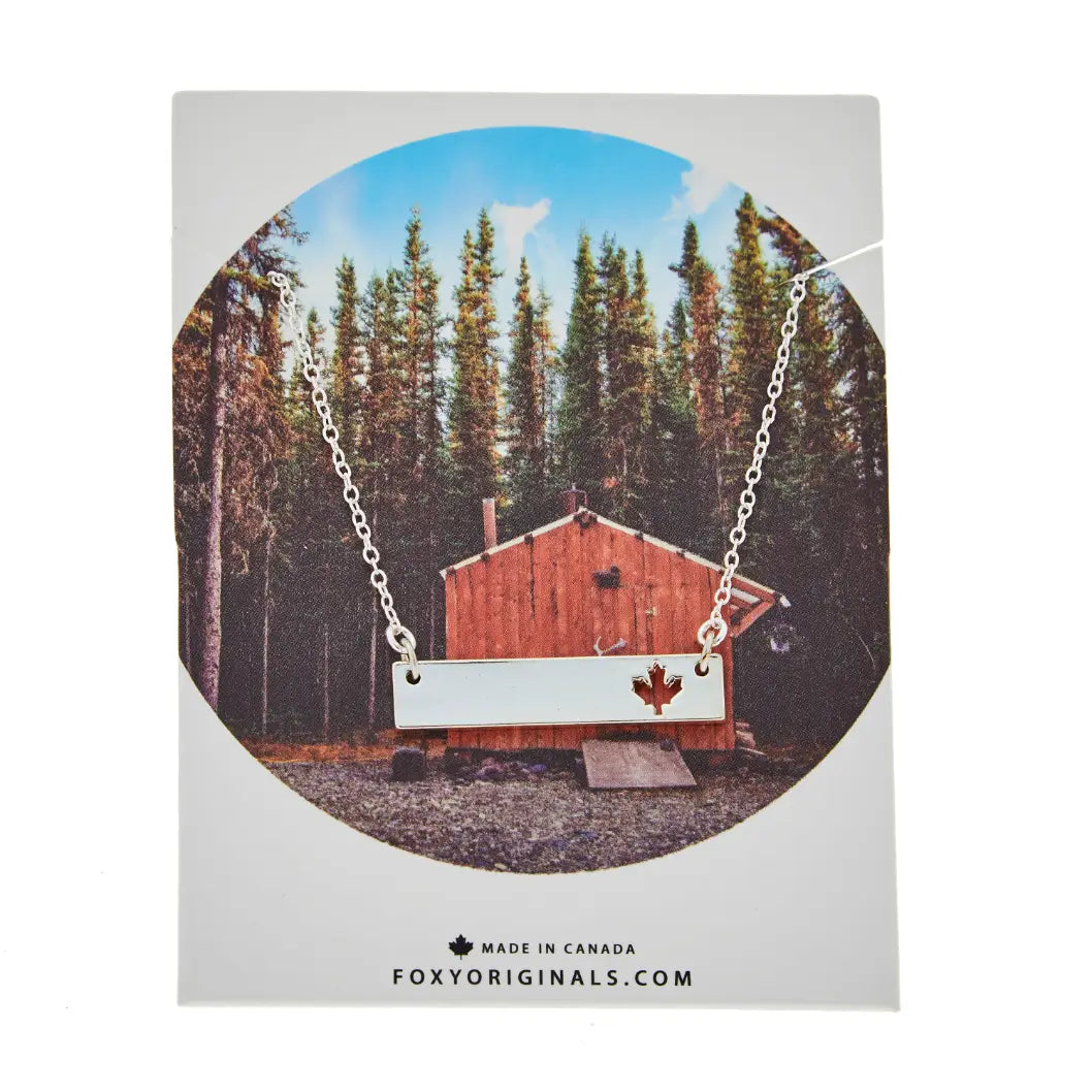 Show your love for Canada with the iconic maple leaf symbol carved out from a classic bar necklace. A subtle touch to keep your Canadian pride close to your heart.