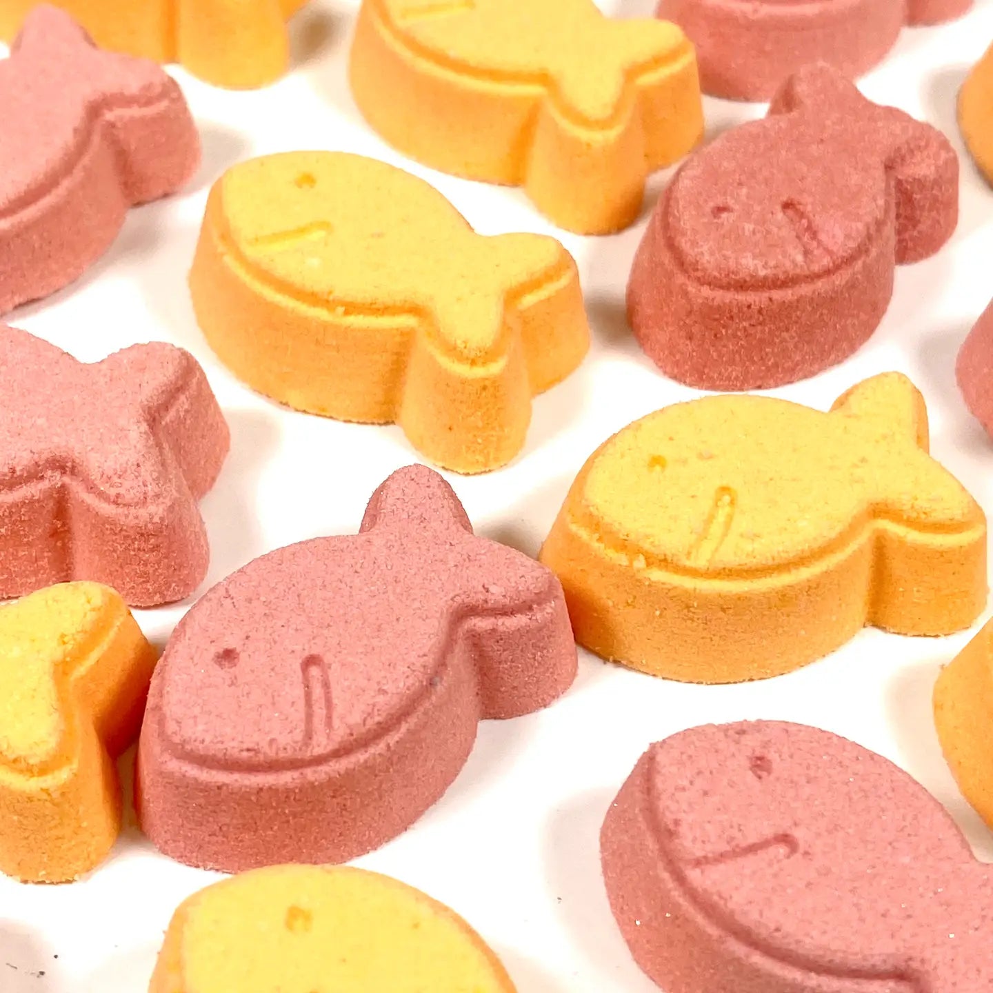 Mini bath bombs are a fun and exciting way to make bath time more enjoyable for kids. These bath bombs are perfect for children who love to play with goldfish and enjoy cherry scented fragrances. They are designed to be small enough for tiny hands to hold onto and dissolve quickly, making them safe and easy to use. One of the best things about these mini bath bombs is that they do not stain the bathtub or skin. This means parents can relax, knowing that their children can play and enjoy their bath time without worrying about any unwanted marks or stains. Plus, with the Cherry scent, the bathroom will smell amazing and fresh.