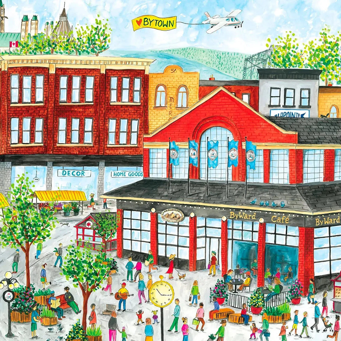 Ottawa's Byward Market is full of life in this bustling 1000-piece puzzle, featuring famous landmarks like the Beavertails stand, the Byward Market building, Parliament, the National Gallery and the Alexandra Bridge. It also has hints of Market mainstays like the Lapointe Fish market and Mercury Lounge.