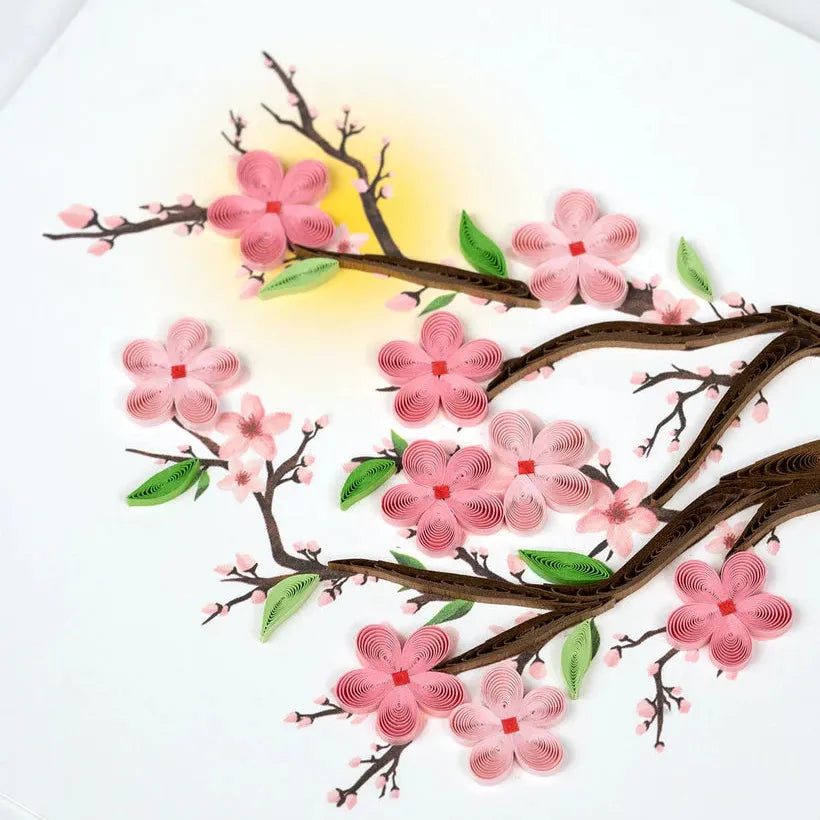 Our quilled Chery Blossom card evokes feelings of renewal and optimism as the beautiful blooms burst on the handcrafted tree branches.