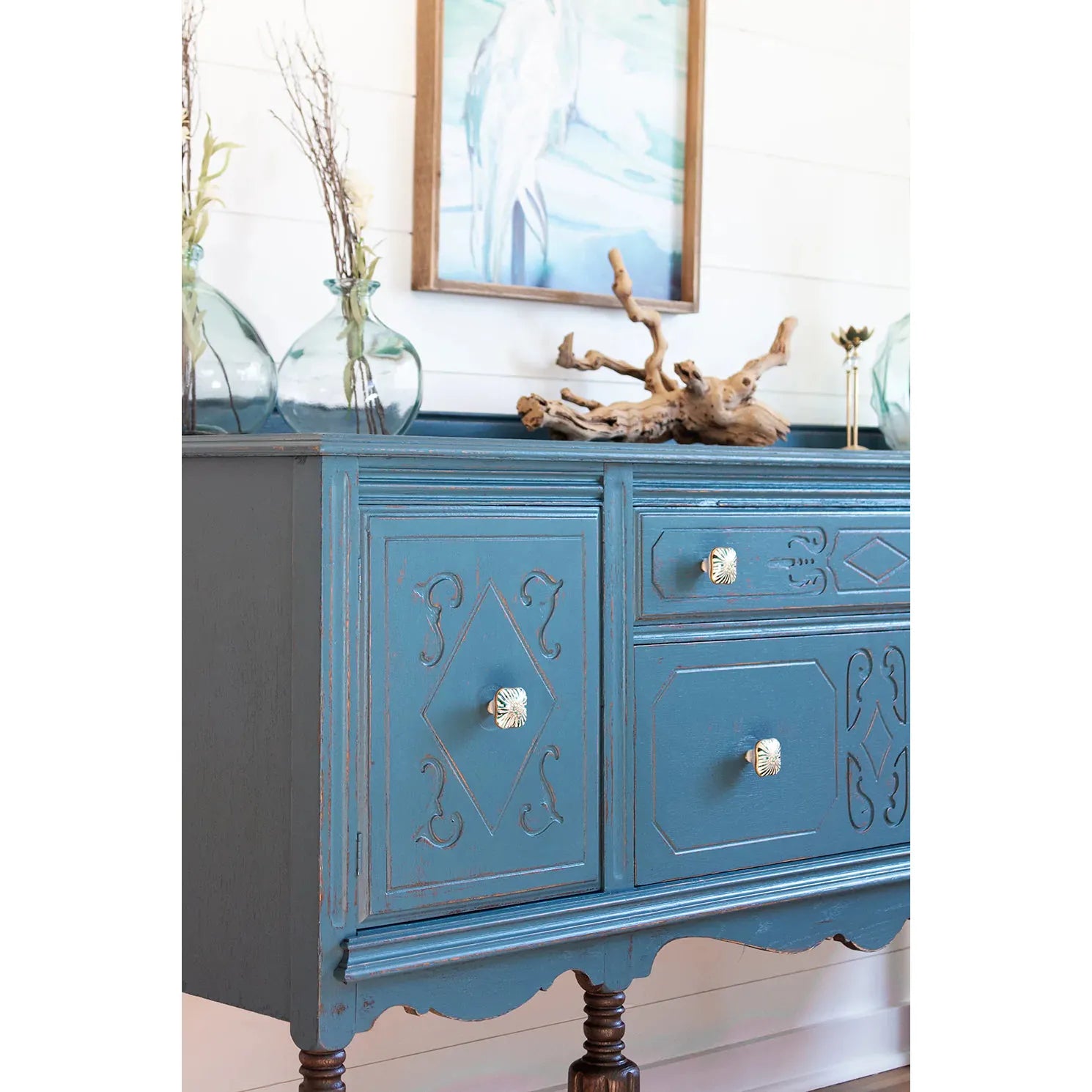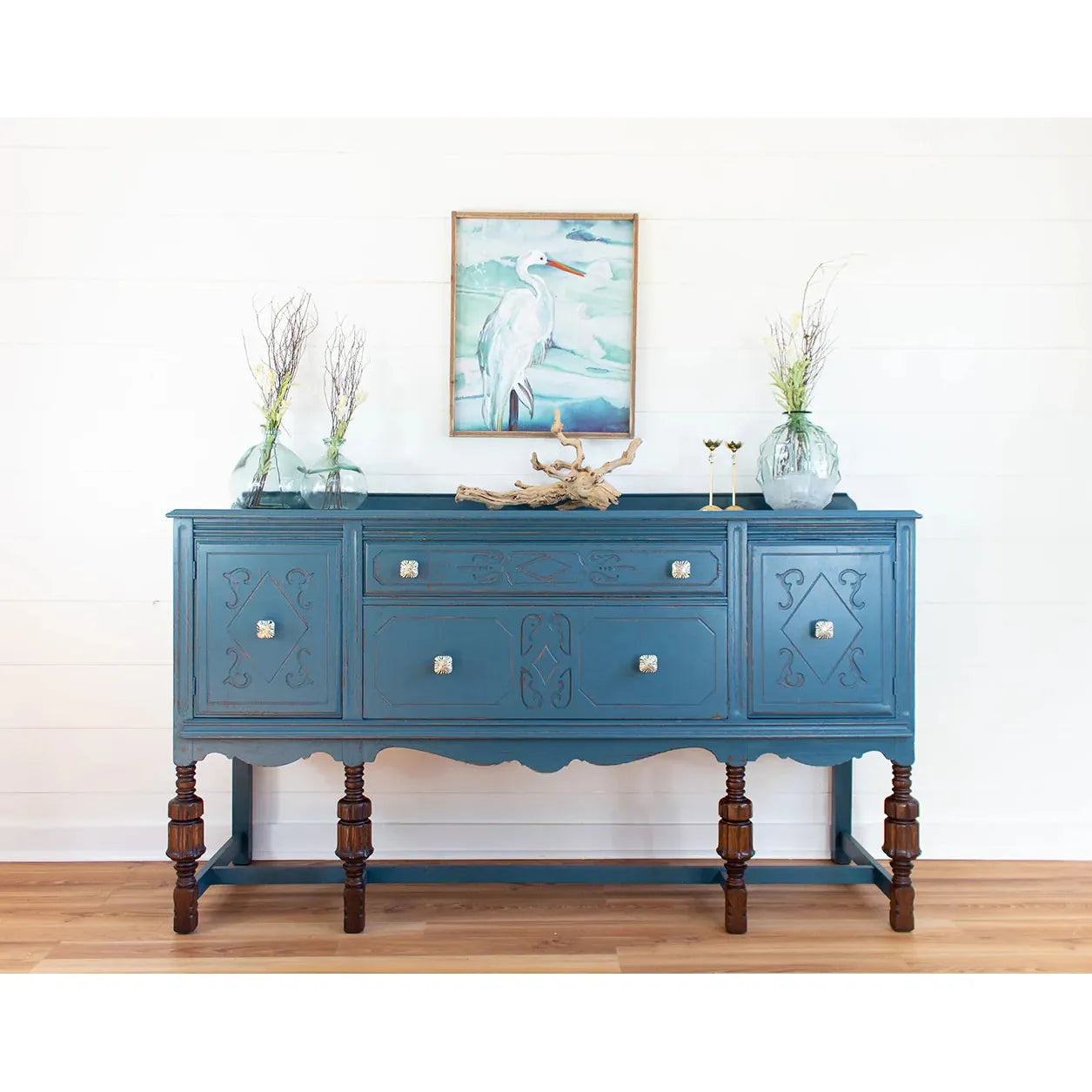 Works beautifully on its own or with neutrals…think white seashells, sandy shores, and deep blue oceans. The perfect trio.