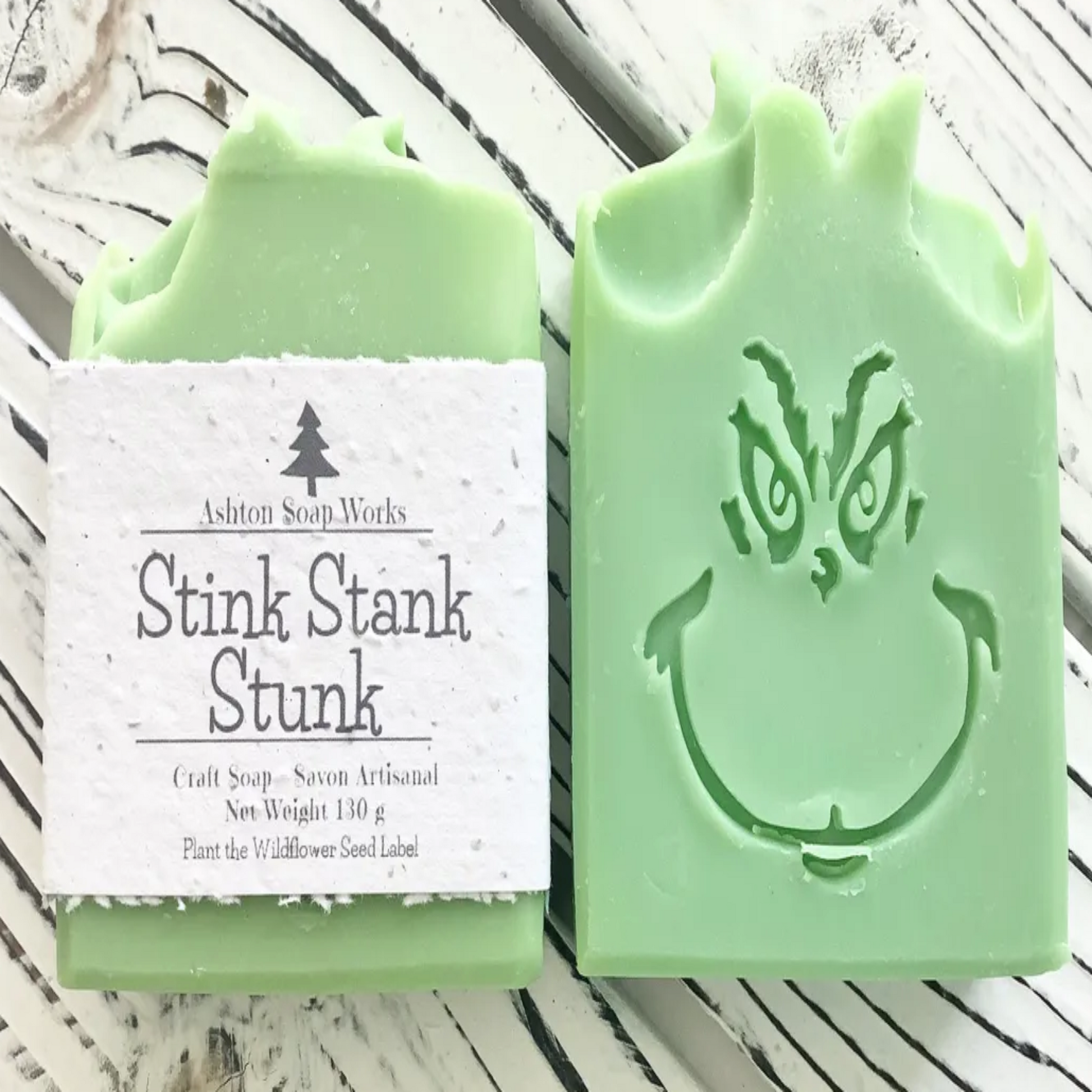 This Grinchy bar is a tribute to one of our favourite Christmas characters! This bar smells of a feast he might feast upon… rotten, crisp green apples, stale juniper berries and musty old balsam pine mixed with aromatic decrepit cedar leaf, Stink Stank Stunk.