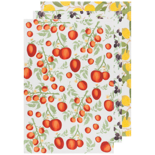 Extra soft and uniquely textured floursacks evoke nostalgic memories of grandma's favorite kitchen linens. Made from superior quality cotton, each set includes three charming prints that are sure to become treasured classics in the kitchen.